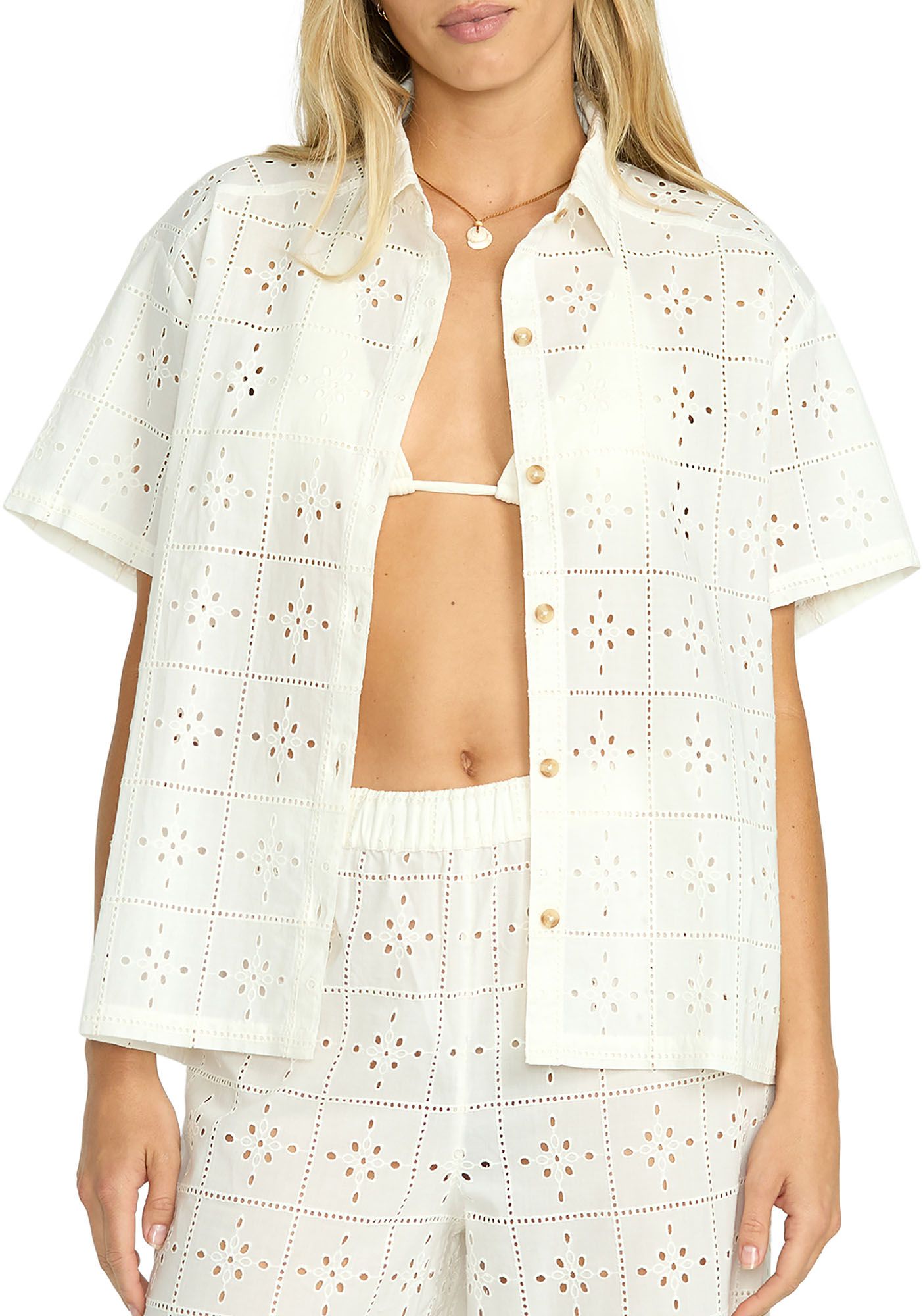 Billabong Women's Eyelet Crush Short Sleeve Shirt