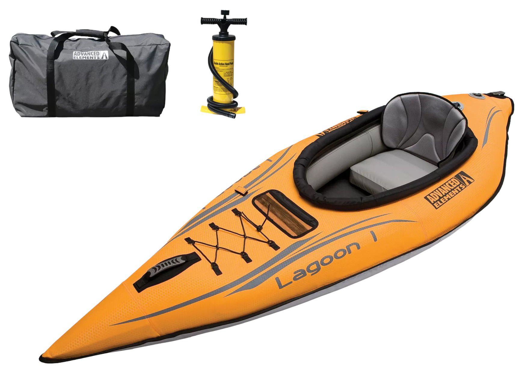 Enjoy a great time on the water with our sporty Lagoon 1 inflatable kayak. Measuring 8'4'', this kayak has fixed rigid forms in the bow and stern that help cut through waves and keep you on course. It comes with an inner tube cover for increased rigidity and durability. Additional features include an inflatable seat rest, foam floor, paddle loops, and a tracking fin to ensure optimal paddling performance in any water condition. Whether on a calm lake or gentle river, this kayak is designed for versatile use in bays and estuaries. Experience the ease and convenience of getting on the water quickly with our Lagoon 1 kayak.