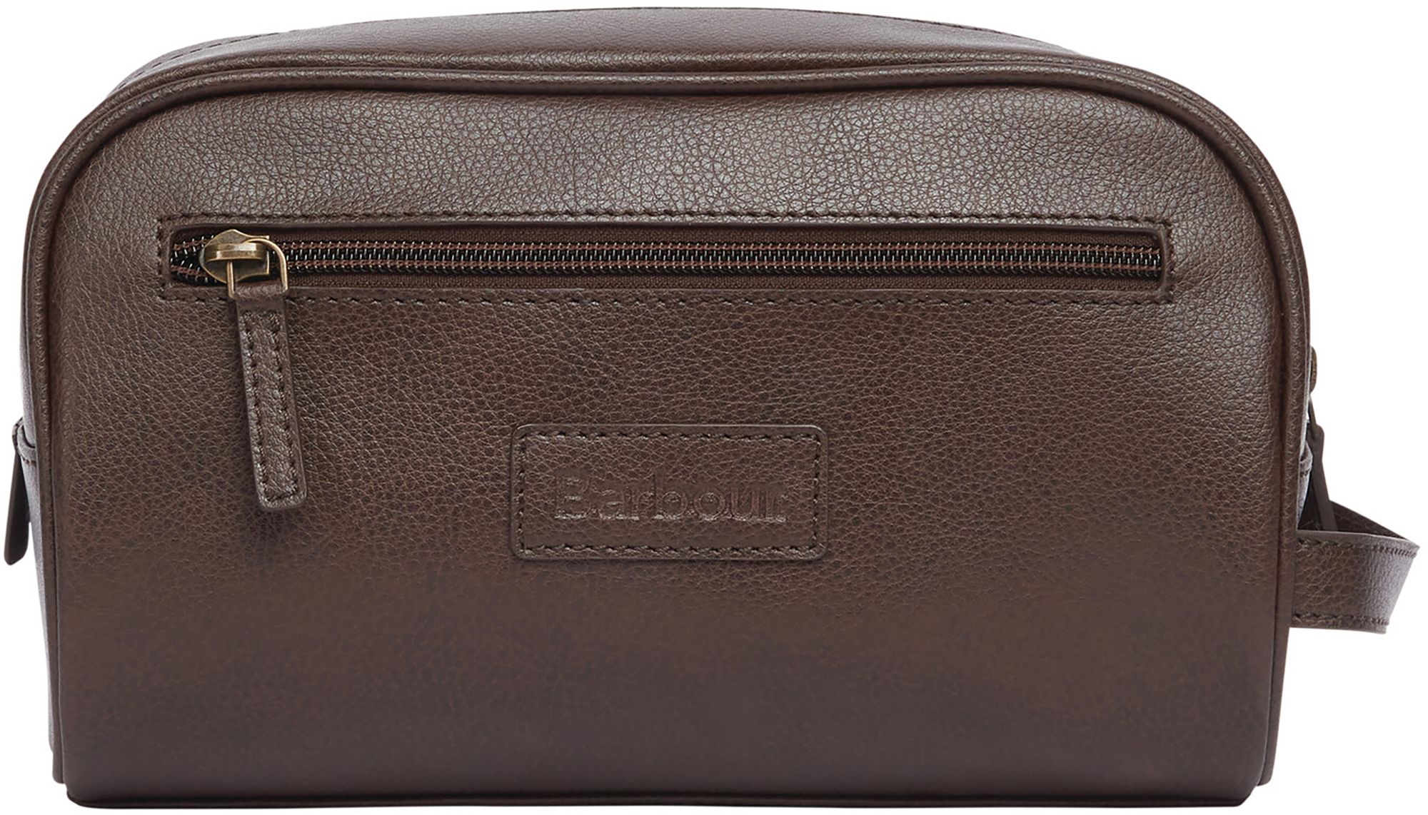 The Barbour leather washbag combines rugged texture and charm