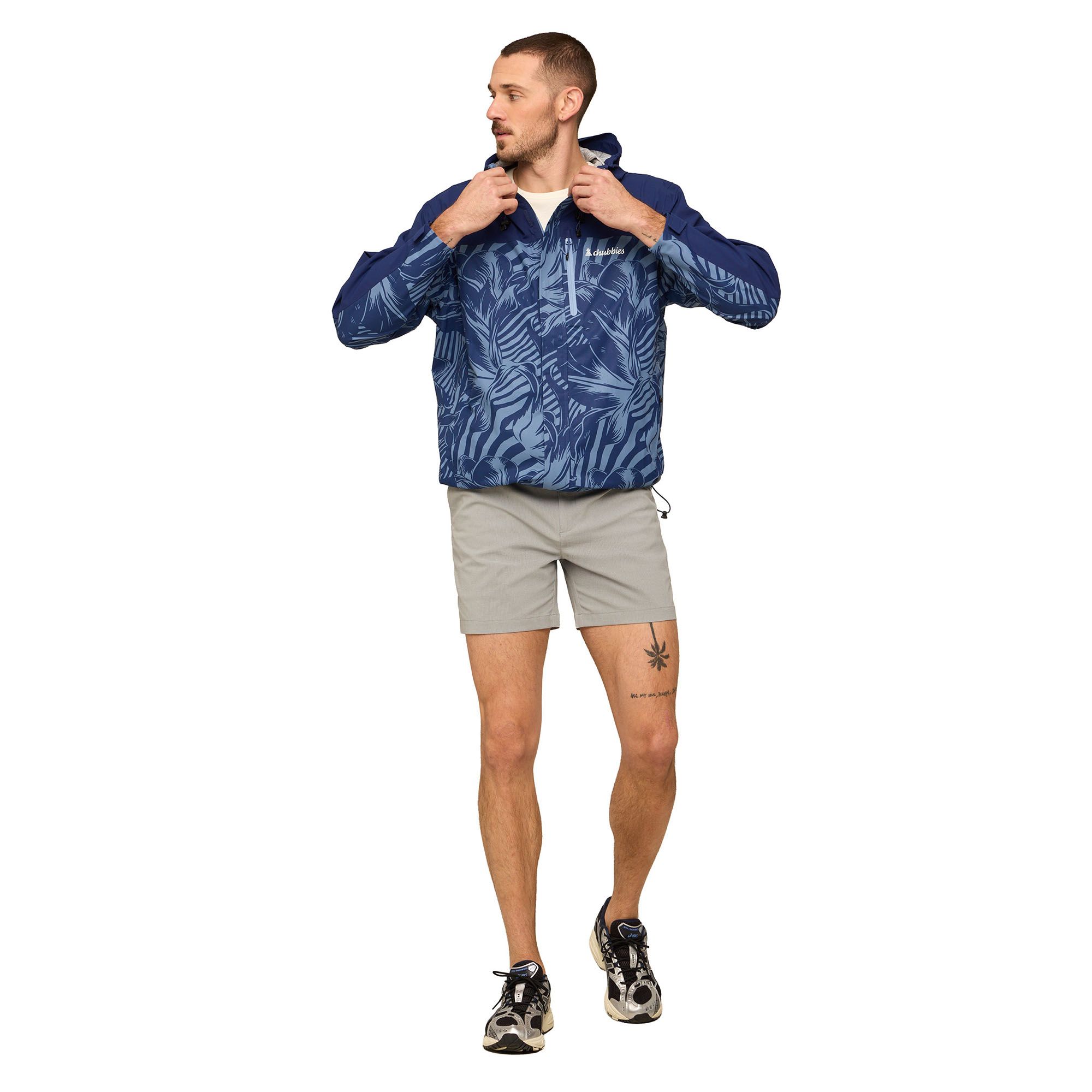 Let the rain fall. The Chubbies Rain Jacket is here to be your ultimate element protector. Waterproof, breathable, and so lightweight, it’s made with recycled polyester and fully taped seams to keep you dry and warm all over. The 2-way adjustable hood, full zip, and waterproof chest pocket ensure everything stays dry, especially your phone (you never know who might be calling). We even included a super soft chin guard for maximum face comfort. When the sky spits on your plans, this jacket keeps you on schedule.