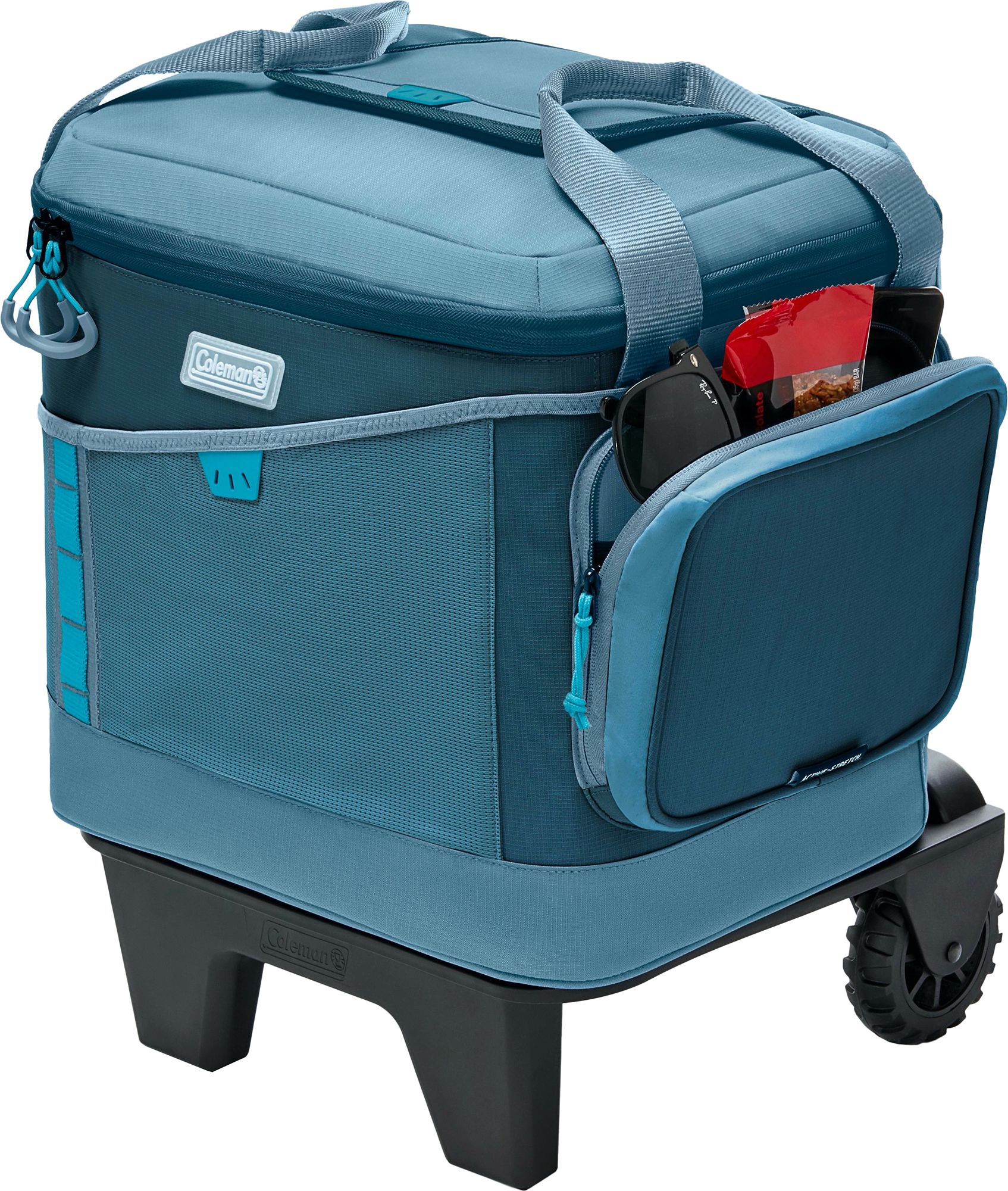 Heavy-duty wheels, telescoping locking handle for easy pulling across rough terrain