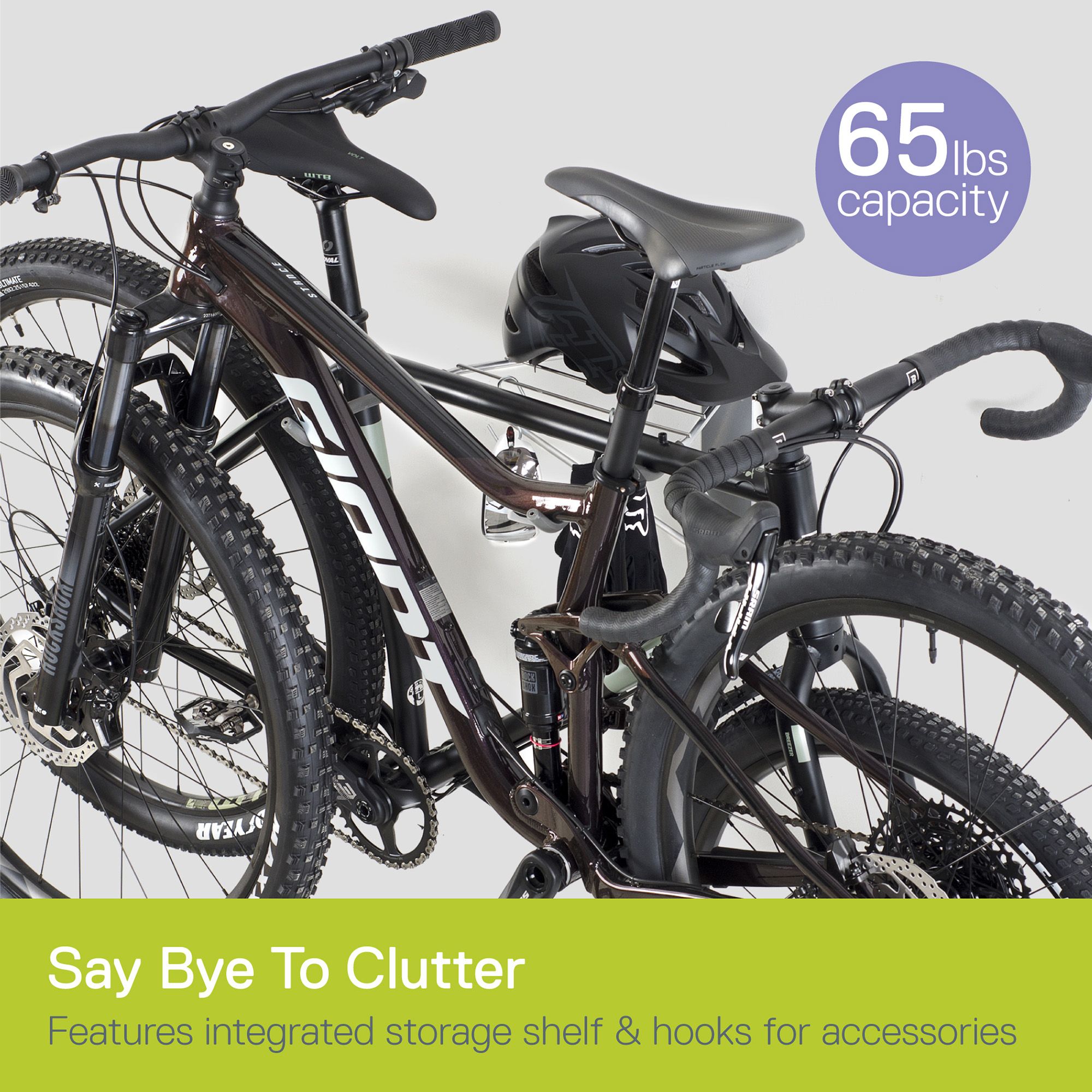The Delta Cycle® Two Bike Wall Mount with Shelf is a functional storage solution. This shelf folds to save space and has rubber arms to protect your bike's finish.