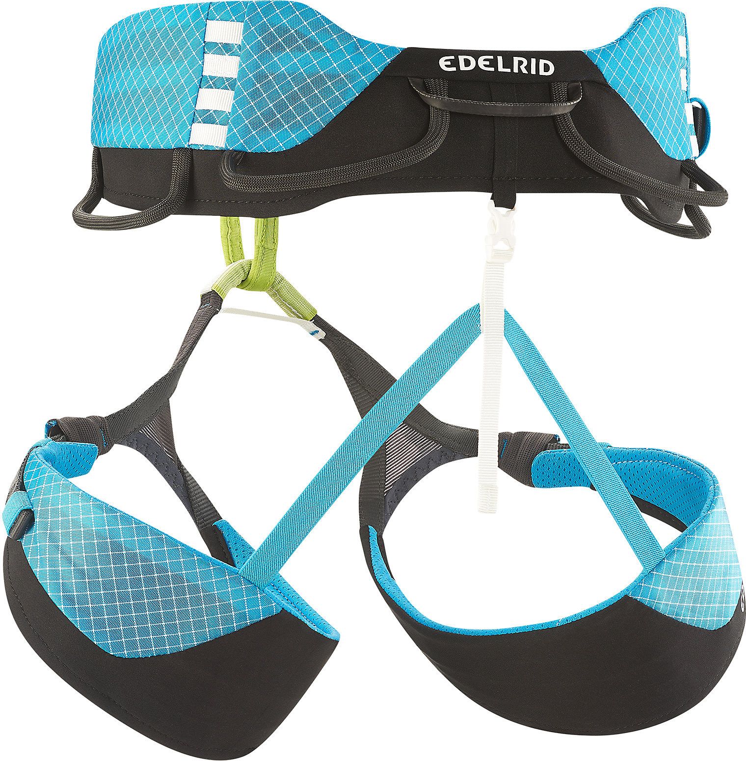 5 symmetrical gear loops, 4 attachment options for ice screw clips, and a chalk bag loop at the back.
