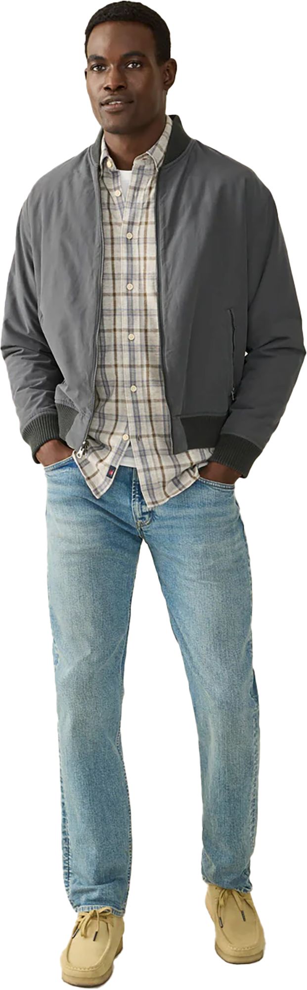 Sporty and utilitarian, the bomber jacket instantly makes any outfit look street-smart. We made ours even more versatile with a fully reversible fabric with all the signature elements of the style: knit rib trim, metal zippers and a slightly cropped fit.