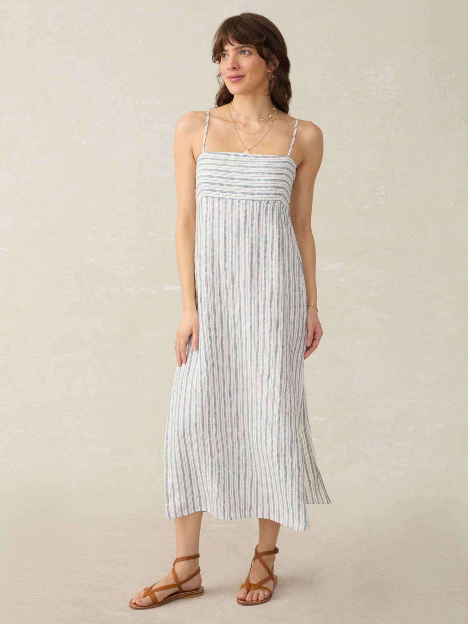 A summer-ready, whimsical stripe adorns this timeless dress that brims with everyday ease but is perfectly suited for any special occasion. Thoughtfully designed with a beautifully textured linen blend in a low-key figure skimming fit, dressing up should always be this effortless.