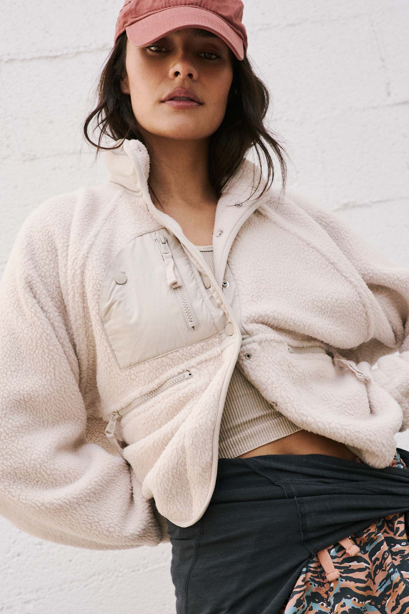 Perfect to layer over activewear or streetwear, this fleece jacket features a button-up front with cool zippered pocket details.