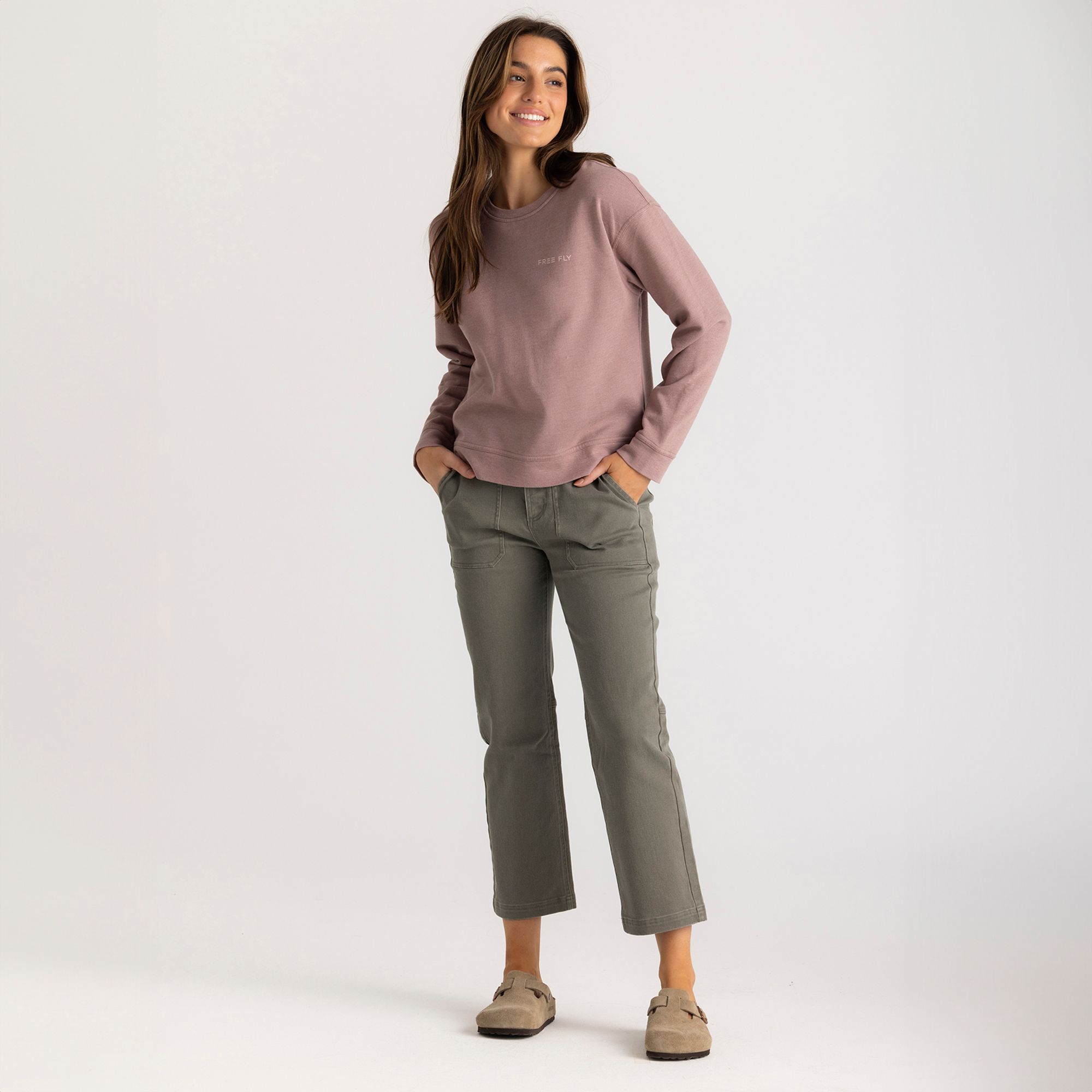 Sometimes the best way to kick back is with a classic. This ultra soft, washed fleece is so comfy, it just begs to be worn on chilly morning adventures or as a post-hike, post-shower unwinding layer. The Carve Your Path Fleece Crew has a relaxed slightly cropped fit, along with the Free Fly logo on the left chest and a custom, geometric back graphic inspired by those intrepid trailblazers who throw out the rules and go against the grain.