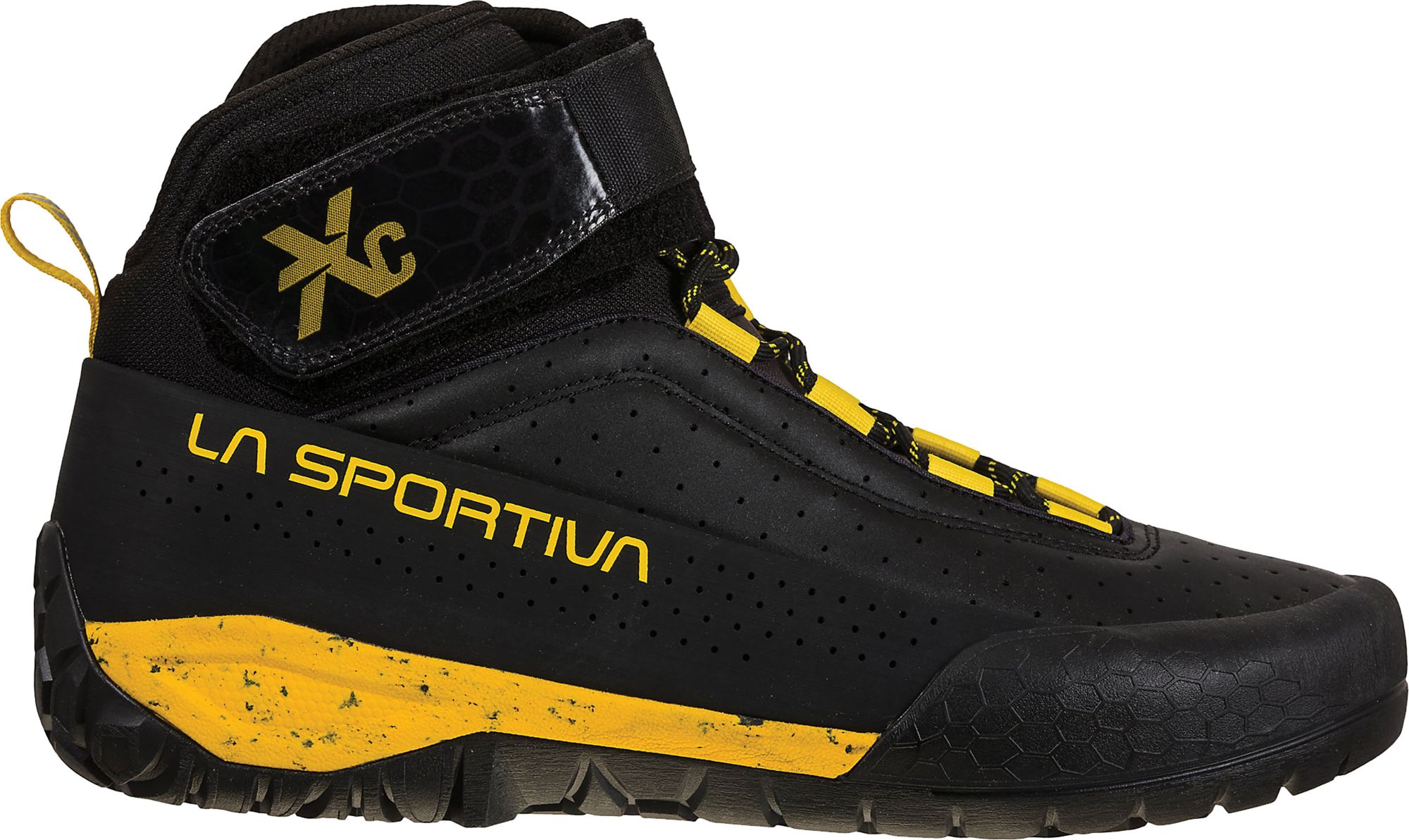 Rounded perimeter and heel keeps the shoe from being pinched between rocks