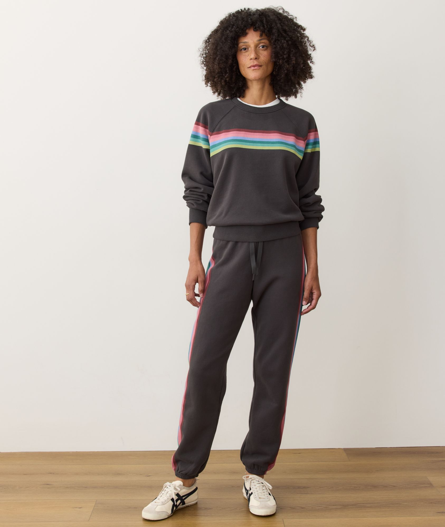 Say hey to the top half of a bestselling sweatsuit. With a brand new stripe colorway for Fall, it's lightweight enough to wear towards the beginning of summer and warm enough to wear during cold winter. If you live in San Francisco, we just described the weather every single day, so you might as well grab a few. This fabric gets its soft superpowers from the fact that it's fleeced on the inside and then peached on both sides. Which basically means this is as soft as it gets.