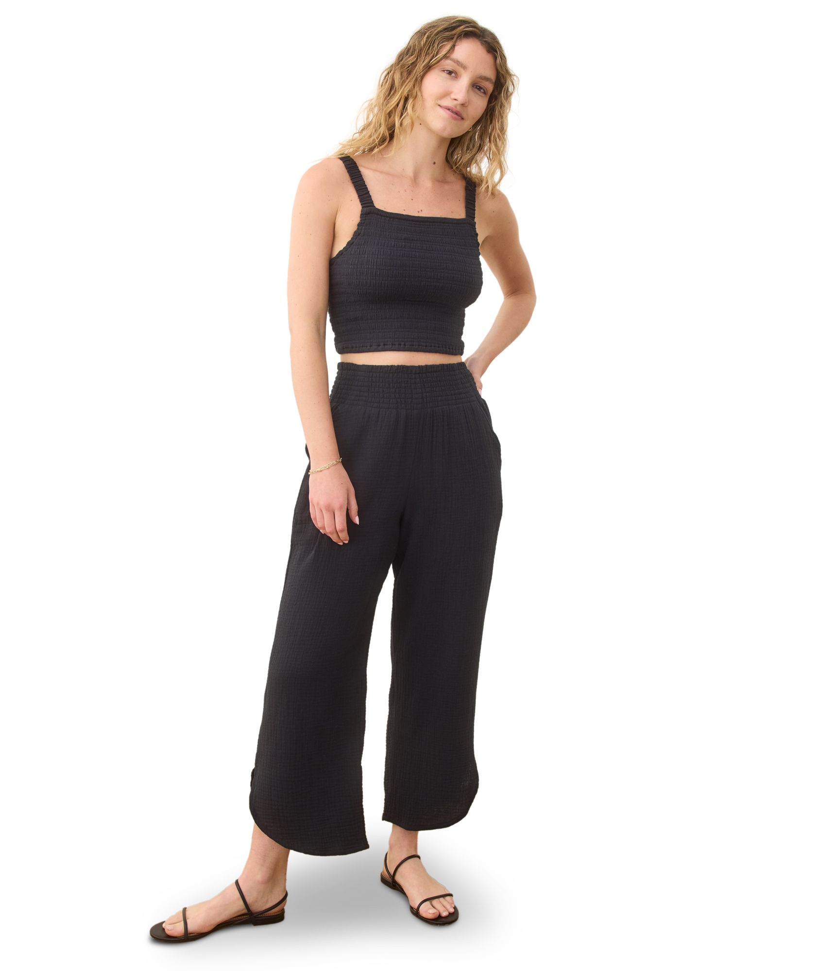 Meet the newest member of our Double Cloth crew. This new top features a smocked bodice, cropped length, and two versatile hues.