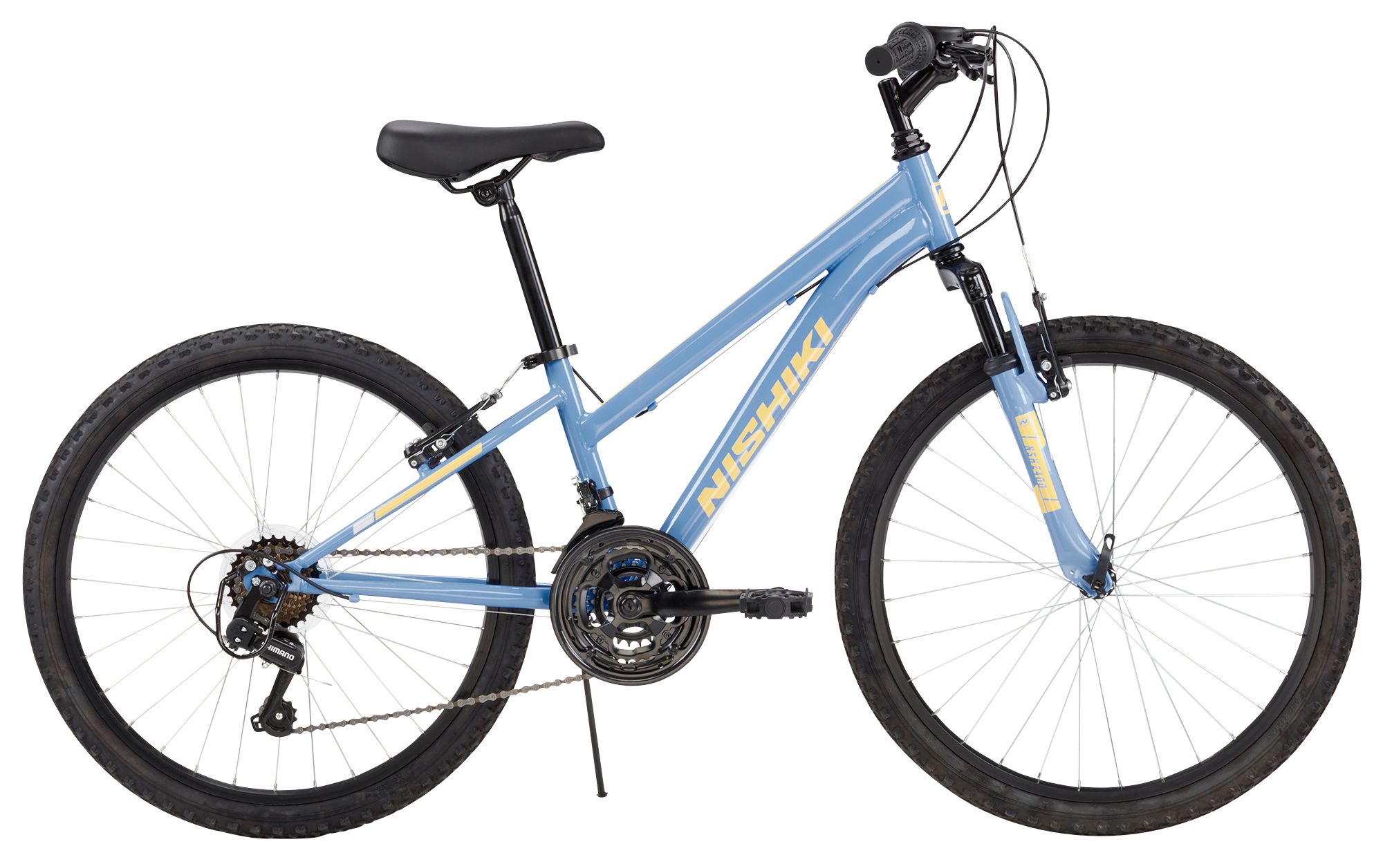 A perfect bike for when she heads outdoors! The Pueblo 1.1 Mountain Bike delivers a smooth ride over trails and rough roads thanks to the responsive suspension fork. Easy-to-shift 7-speed Shimano twist shifting delivers reliable performance on both flat and hilly terrain. Dual linear pull brakes deliver great control over wet and dry conditions. This mountain bike provides wider, off-road tires for solid traction. The comfortable, padded saddle features an alloy quick-release seat binder to make it easy to adjust the seat height for the right fit. This bike takes her anywhere, through trails or around town.Manufacturer may substitute components with components of equal or greater performance level.