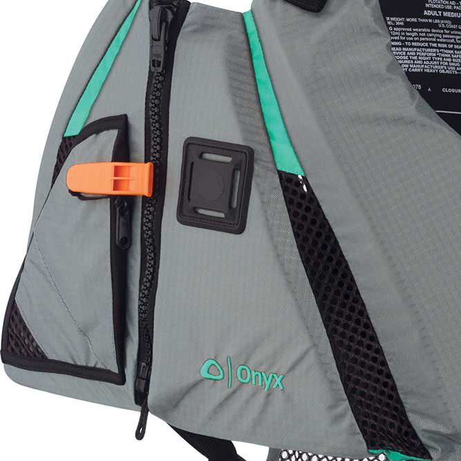 Stay safe and comfortable all day long with the Onyx® MoveVent Dynamic Life Vest is a great choice for any paddling adventure. The flexible, contoured MoveVent design conforms comfortably to your body while allowing ventilation to keep you cool. The mesh portion of the lower back works well with high-back seats and sit on top kayaks. The Dynamic Life Vest features adjustable side belts and adjustable neoprene shoulder pads for the perfect fit.