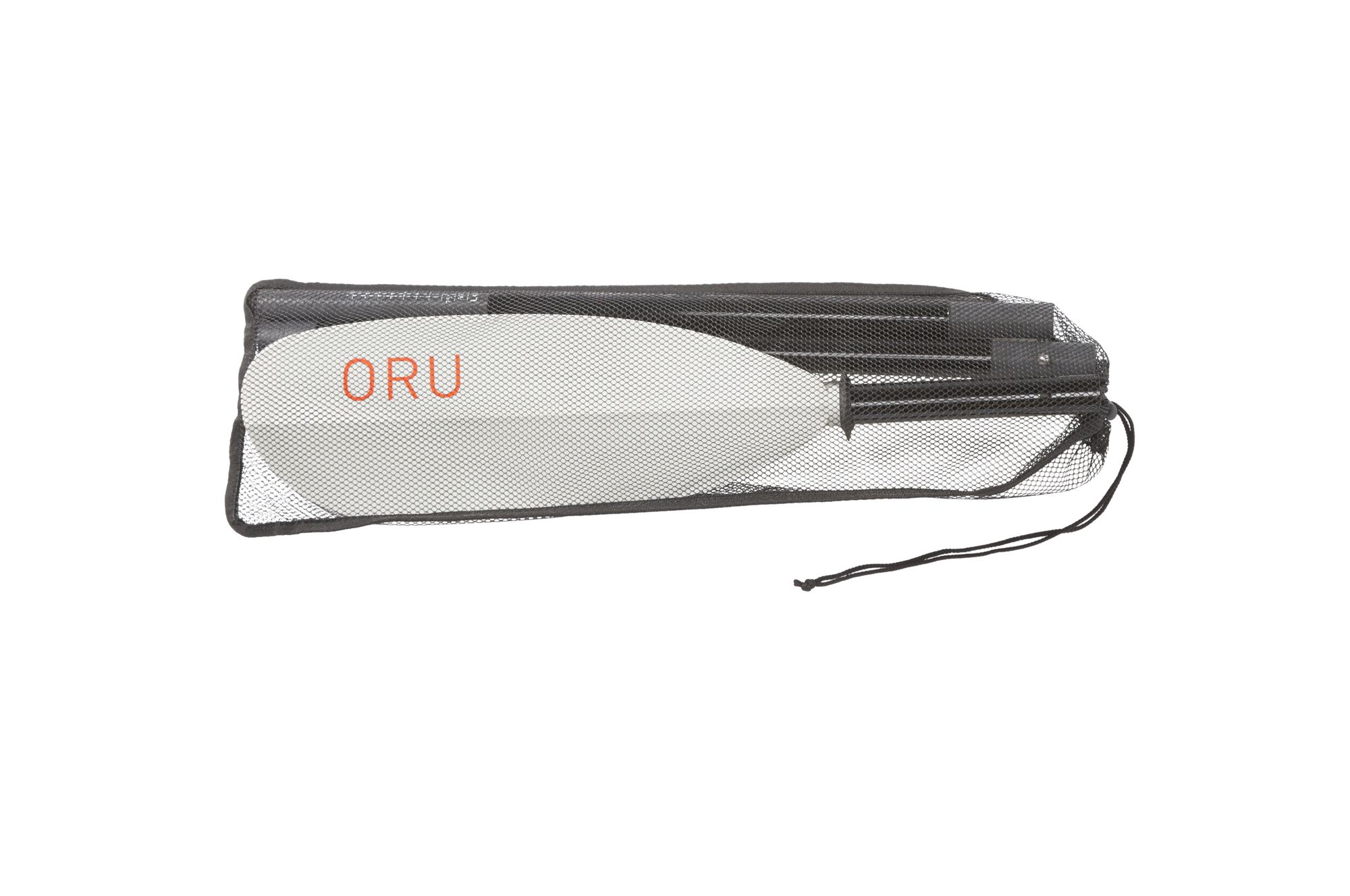 The Oru Paddle—in bright white to match the kayak—breaks down into four pieces, so it stows easily inside the Oru Kayak in box form.