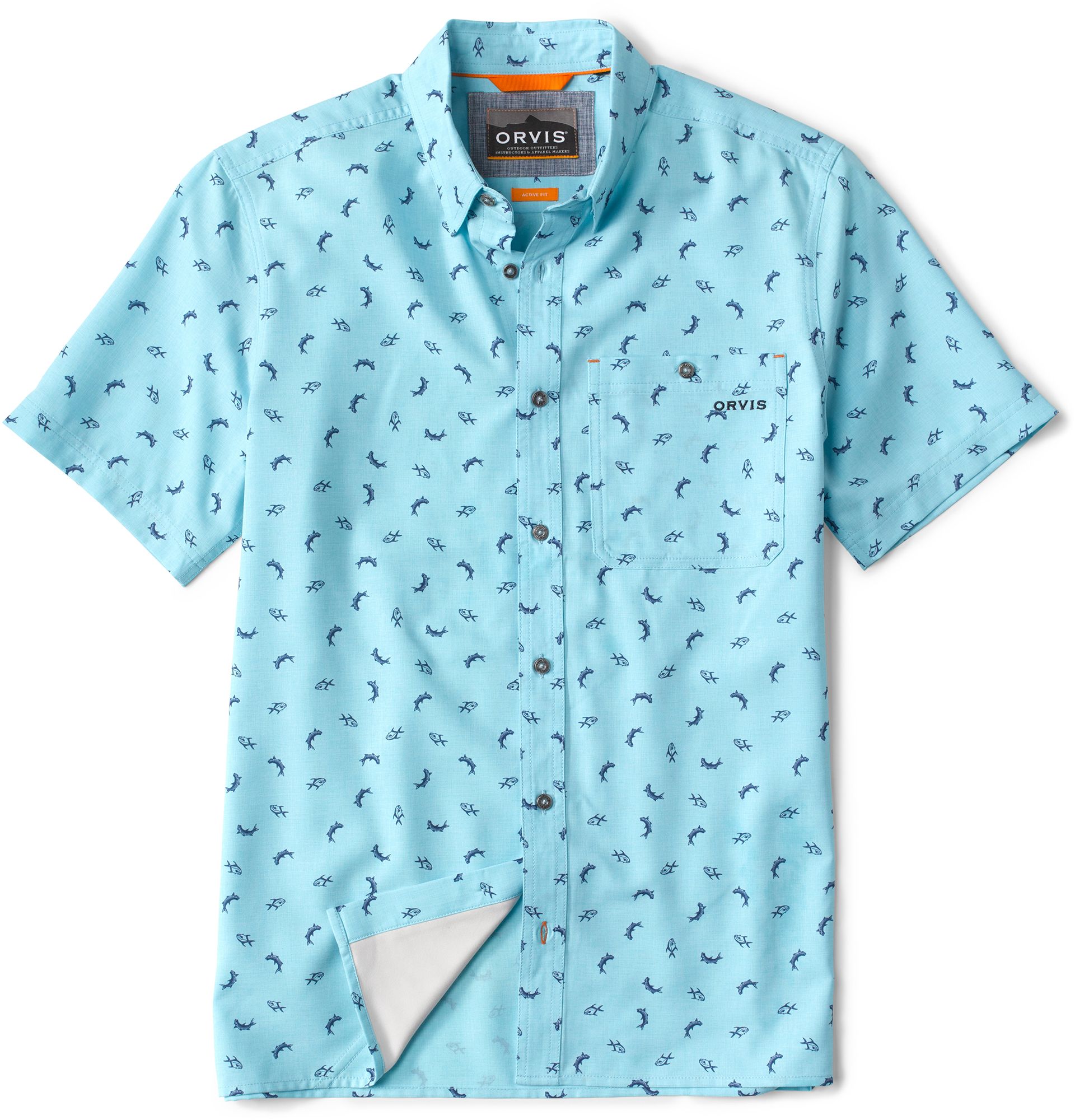 Orvis Men's Tech Chambray Short Sleeve Printed Shirt