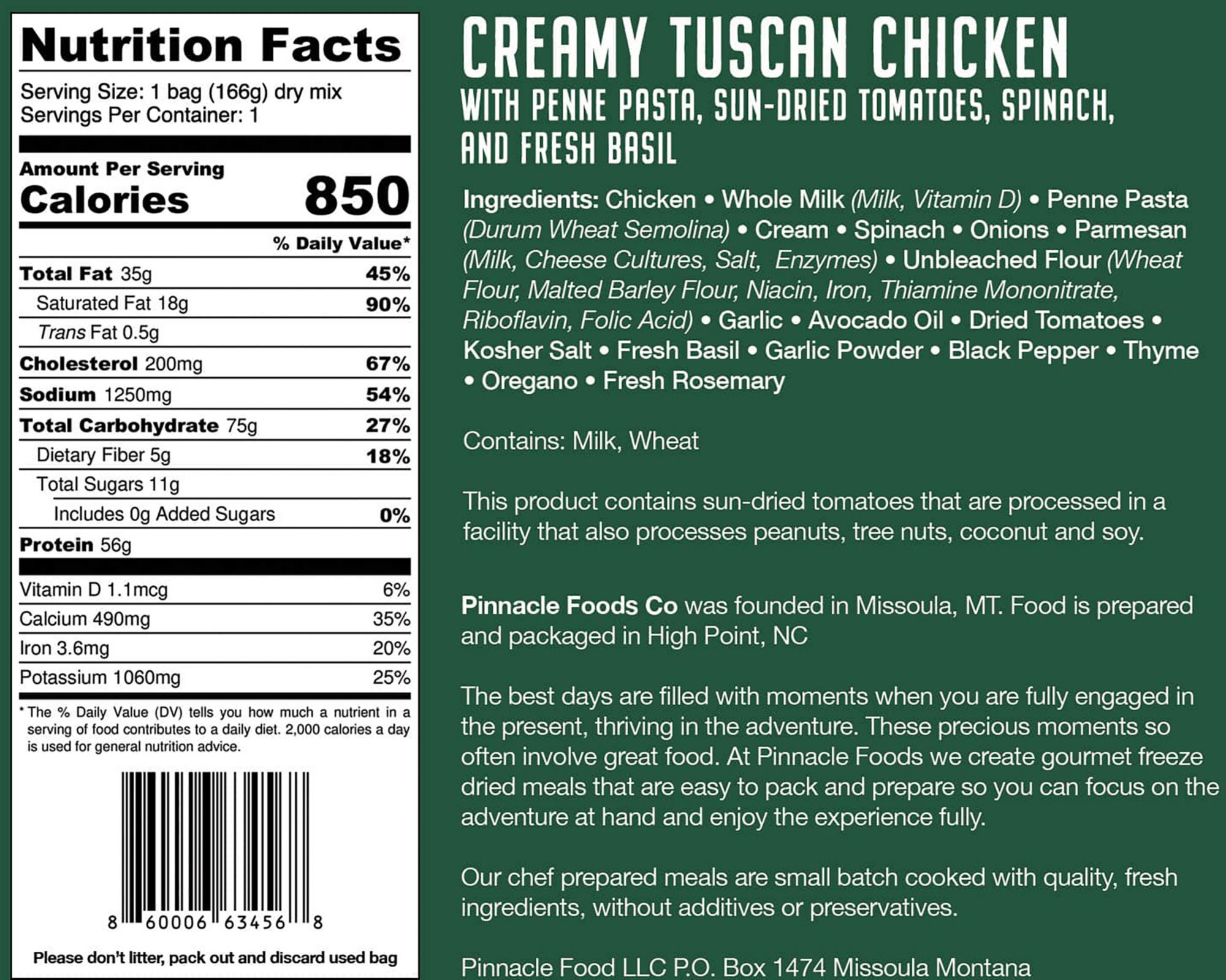 Pinnacle Foods Creamy Tuscan Chicken Freeze Dried Meal