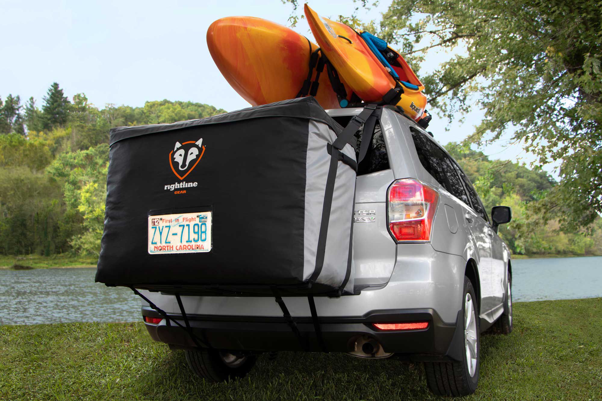 Conveniently carry your favorite paddle, snow or cycling cargo on the road this season with the Car Back Carrier by Rightline Gear®! With a 100% waterproof construction, welded seams and a urethane coated zipper, the Car Back Carrier is perfect for SUVs, minivans and crossovers alike, with or without a roof rack. Rear Car Clips attach the Car Back Carrier to the rear hatch door on your vehicle, while a bottom pole frame provides structural support for your precious cargo inside of the carrier. By mounting onto the back of your vehicle, this carrier stays shielded from the wind and is easy to access for on-the-go convenience all season long!