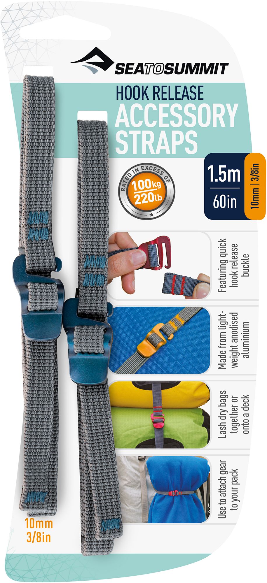 I use the 1m/40in straps to help secure equipment on my bikepacking/touring bike and they work great even when I’m riding single track. The straps stay secure and only come undone when I release them