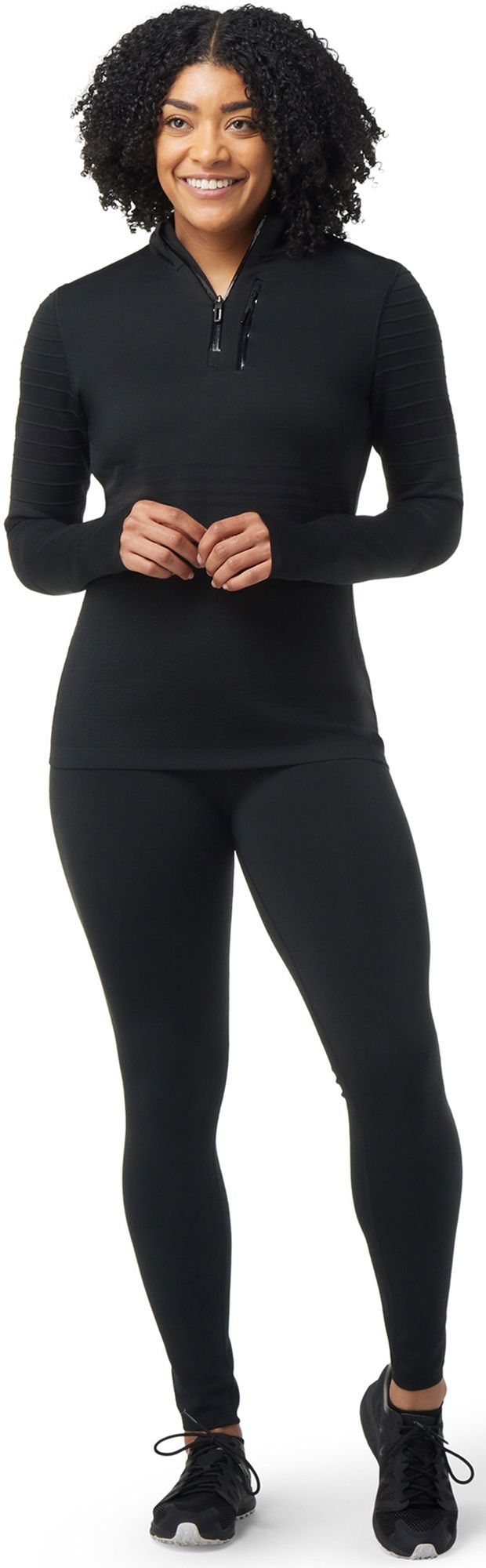 Secure zippered chest pockets; thumbholes at cuffs keep sleeves in place and hands warm