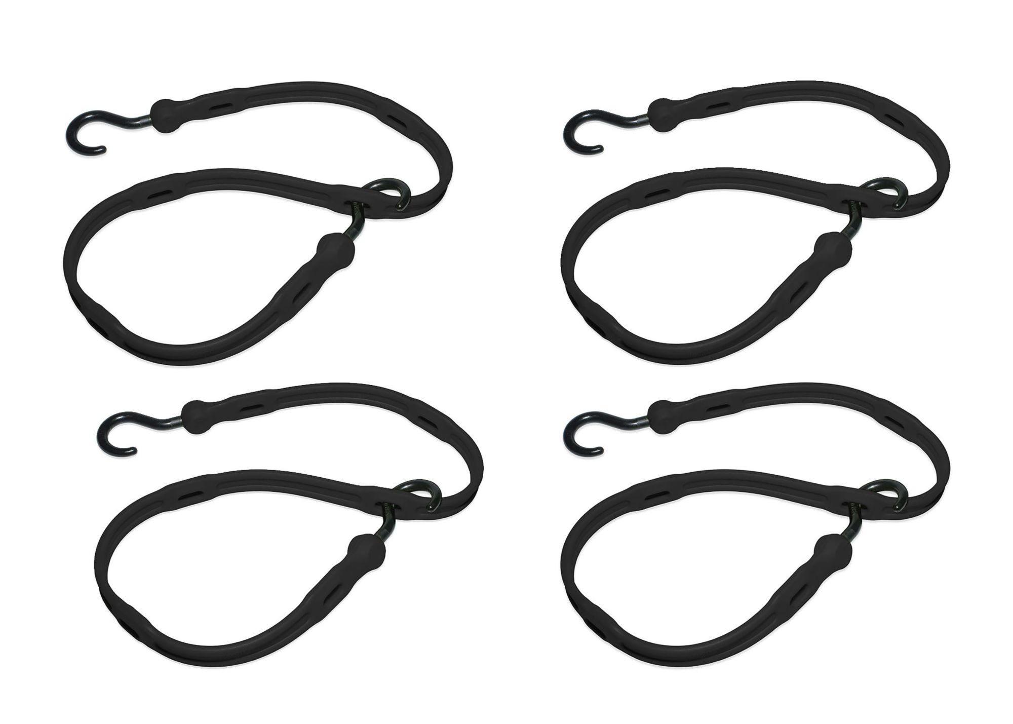 The most universal bungee strap in the world now comes in a reusable 4 Pack bag. This bungee features 2 Integrated Nylon Hooks that are Glass Reinforced and won’t scratch or gouge paint or finished surfaces and 6 reinforced holes evenly spaced down the bungee strap to accommodate any size load or cargo. Multiple Adjust A Straps secured together can produce even longer coverage