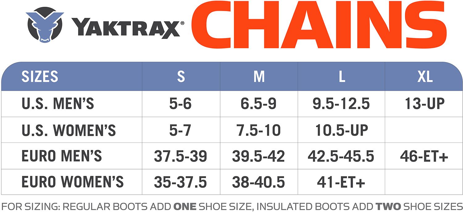 Coined as tires for your feet, the Yaktrax® Chains traction device is perfect for all ice and snow conditions and can be paired with nearly any type of footwear for reliable winter weather grip.