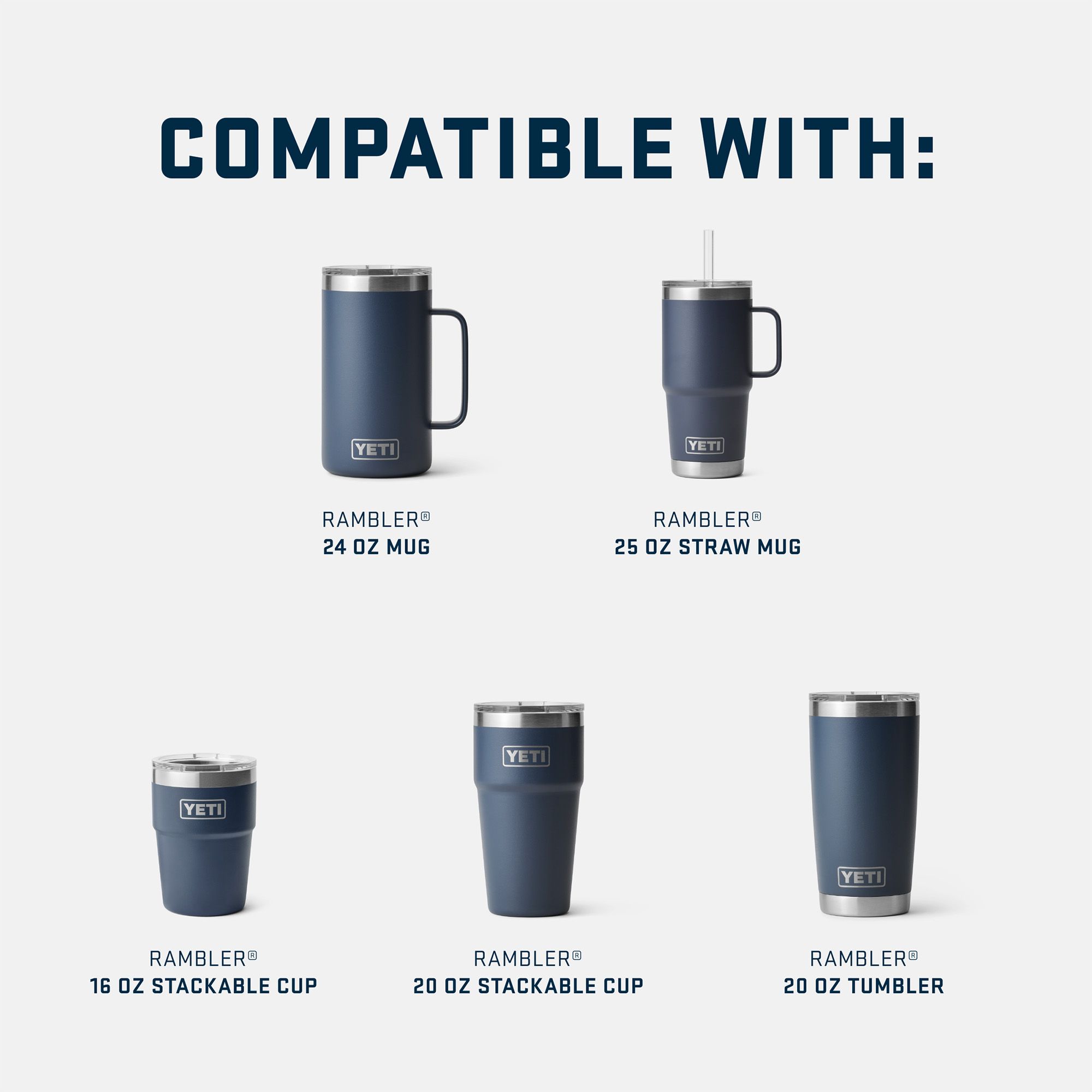 | Fit | Rambler 16 oz. Stackable Cup, Rambler 20 oz. Stackable Cup, Rambler 20 oz. Tumbler, Rambler 24 oz. Mug, and Rambler 25 oz. Straw Mug |
